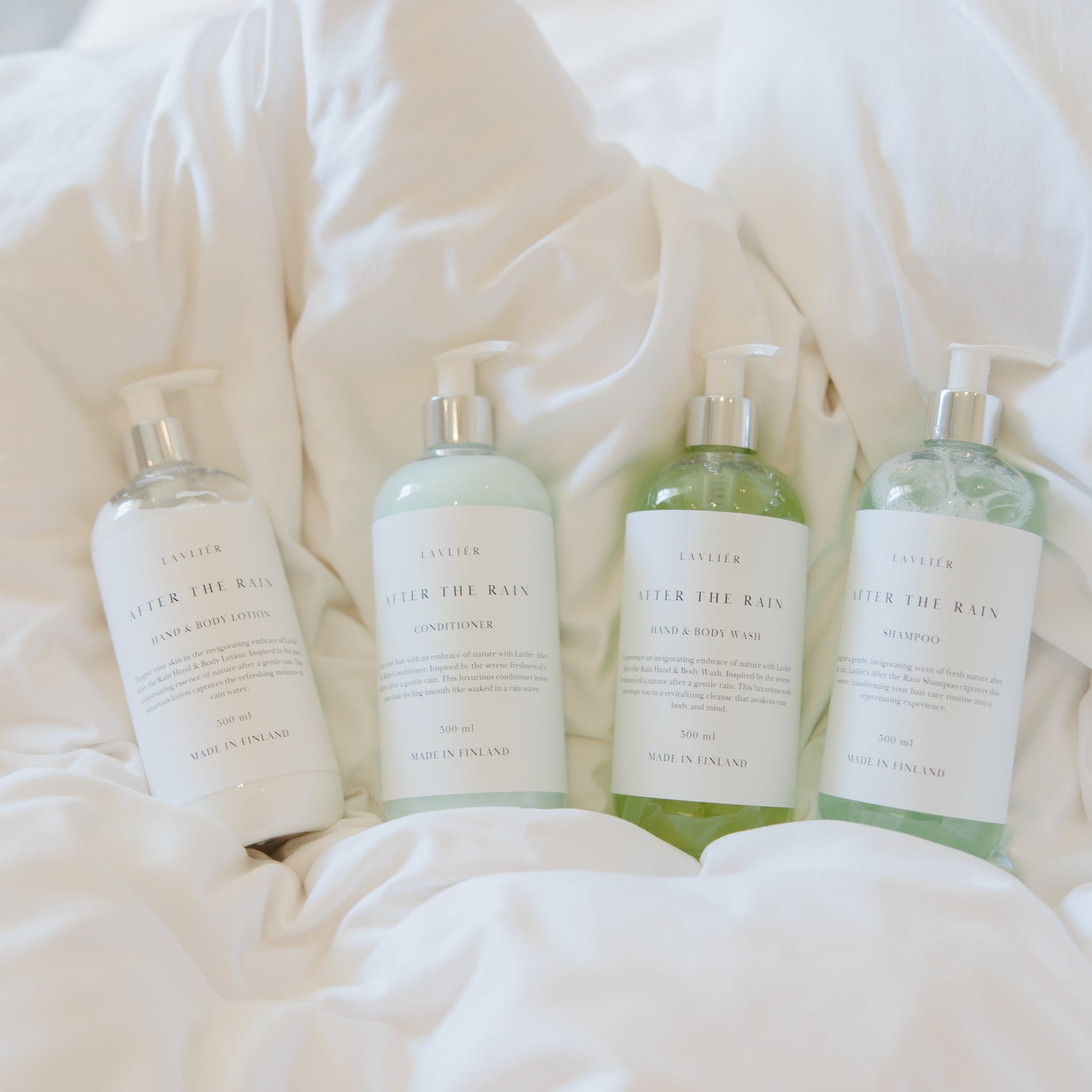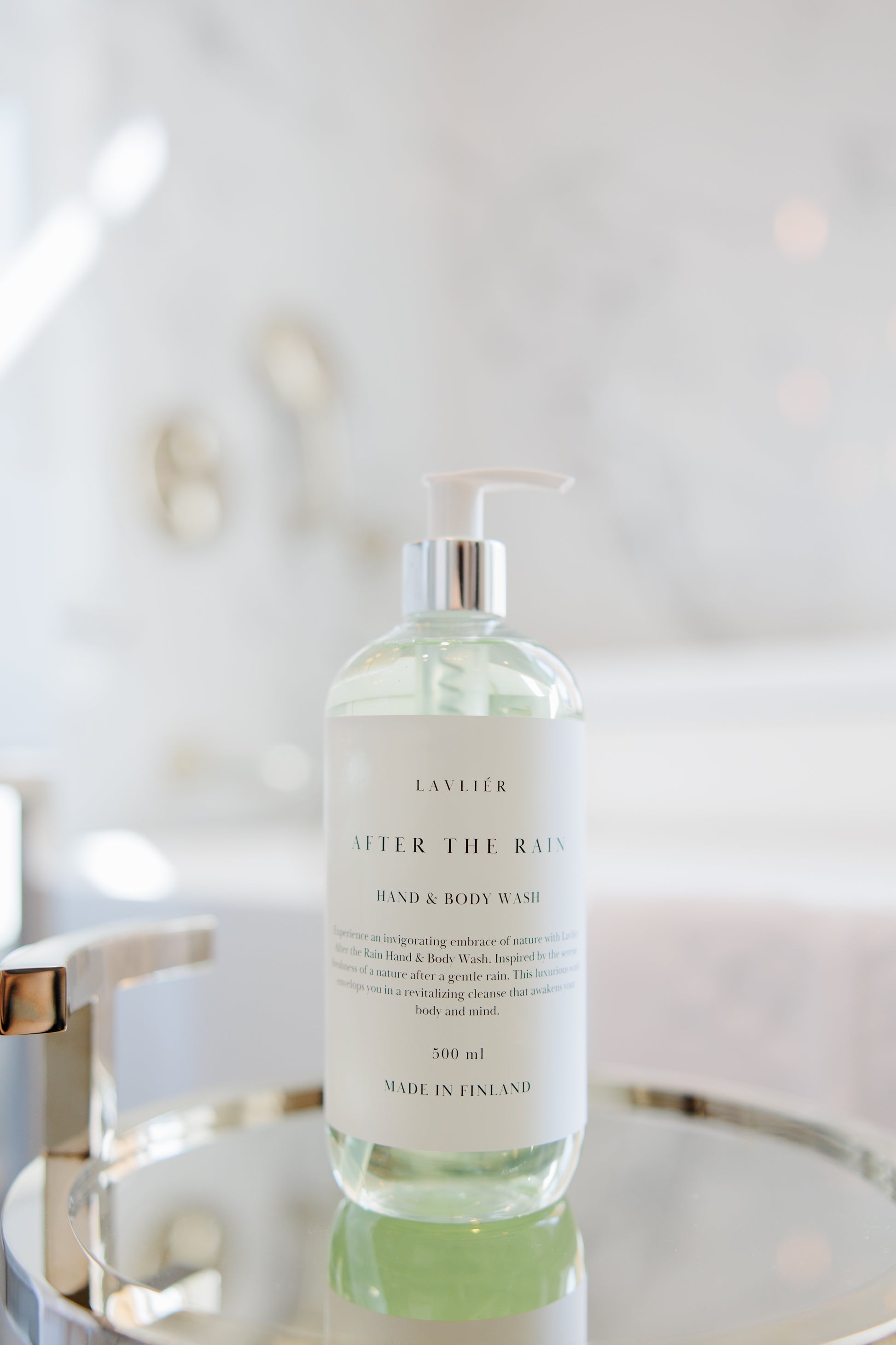 Experience an invigorating embrace of nature with Lavliér After the Rain Hand & Body Wash. Inspired by the serene freshness of nature after a gentle rain. This luxurious wash envelops you in a revitalizing cleanse that awakens your body and mind. After The Rain Hand & Body Wash is a softly washing liquid soap infused with moisturising ingredients, suitable for hands, face and body. It leaves skin feeling cleansed,