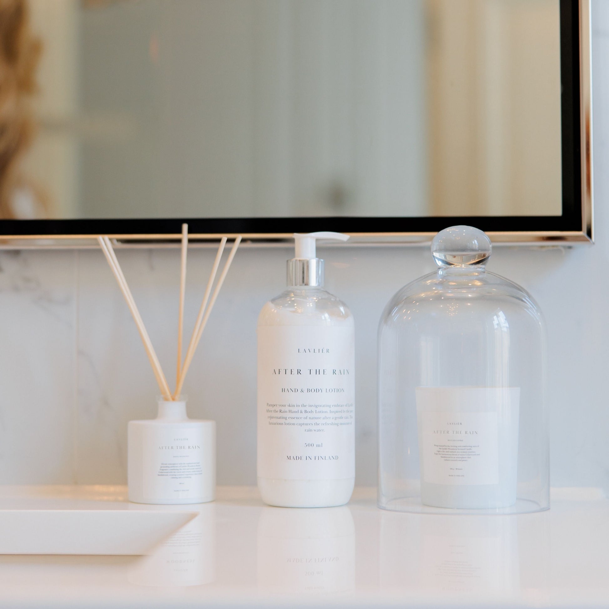 Experience the soothing embrace of nature with Lavliér After the Rain scented candle. Inspired by the serene freshness of nature after a gentle rain. This luxurious scented candle envelops you in a revitalizing atmosphere that awakens your body and mind. Made from high-quality waxes, After the Rain Scented Candle provides a clean and even burn that cast a warm and comforting glow. The room becomes a sanctuary as the fragrance and light combine to create a tranquil and revitalizing atmosphere.