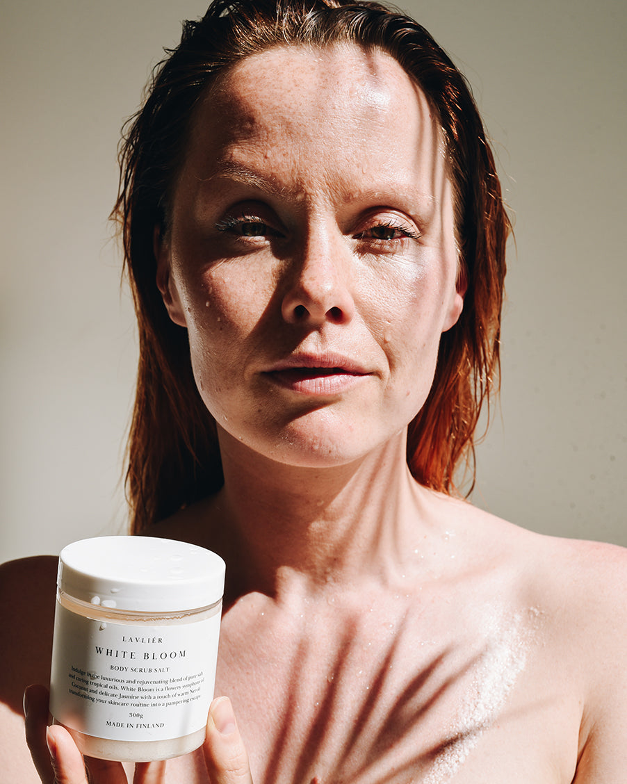 Vegaaninen Lavliér White Bloom- vartalonkuorintasuola on ylellinen kuorintatuote, joka tuo esiin säteilevän ja samettisen pehmeän ihon. Uppoudu valkoisten kukkien inspiroimaan White Bloomin herkkään tuoksuun, joka luo spa-elämyksen, joka virkistää sekä kehoa että mieltä.